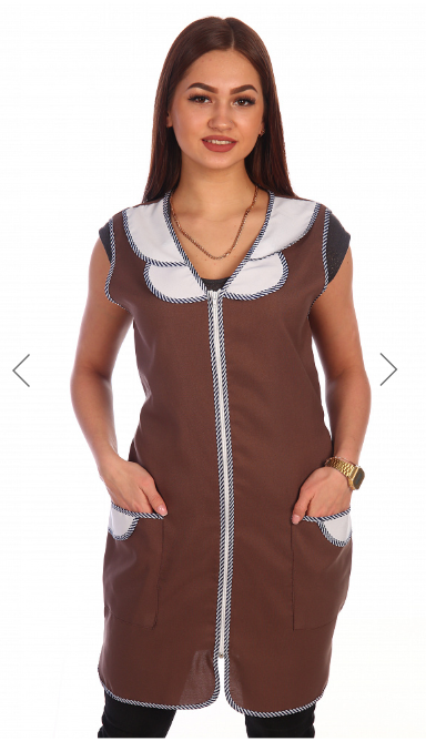 Халат от производственных загрязнений из синтетической ткани.Халат женский прямого силуэта на молнии, с 2 накладными карманами без рукавов, срезы халата обработаны закрытым кантом.Халат для сферы услуг, для клининга, для продавцов.