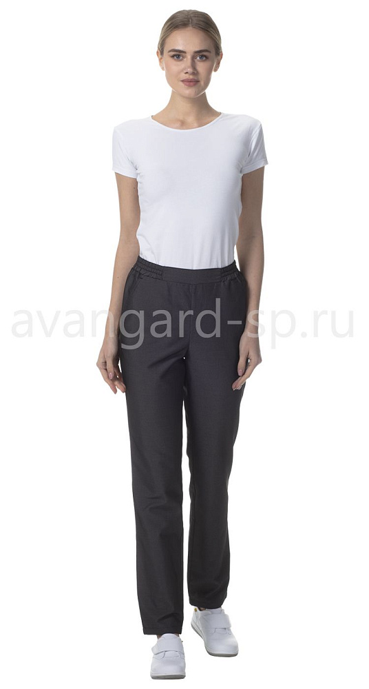 Брюки умеренного объёма. Притачной пояс с эластичными вставками по бокам и сзади для регулирования объема по талии. Спереди карманы с отрезным бочком. В левом боковом шве жаккардовый флажок с логотипом бренда.