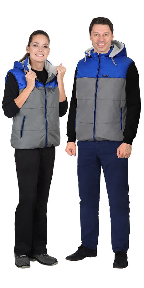 Жилет "ДРАЙВ" (на подкладке флис) серый с васильковым