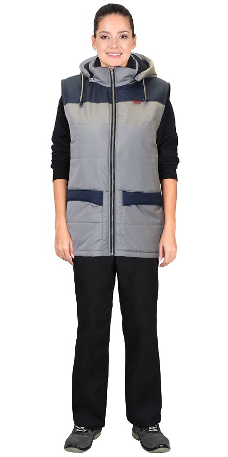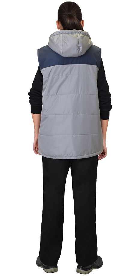 Жилет "ЕВРОНИКА" утепленный, св.серый с т. синим, с капюшоном (на подкладке флис)