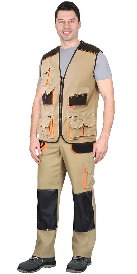 Жилет "МАНХЕТТЕН" песочный с оранж. и черным тк. стрейч пл. 250г/кв.м