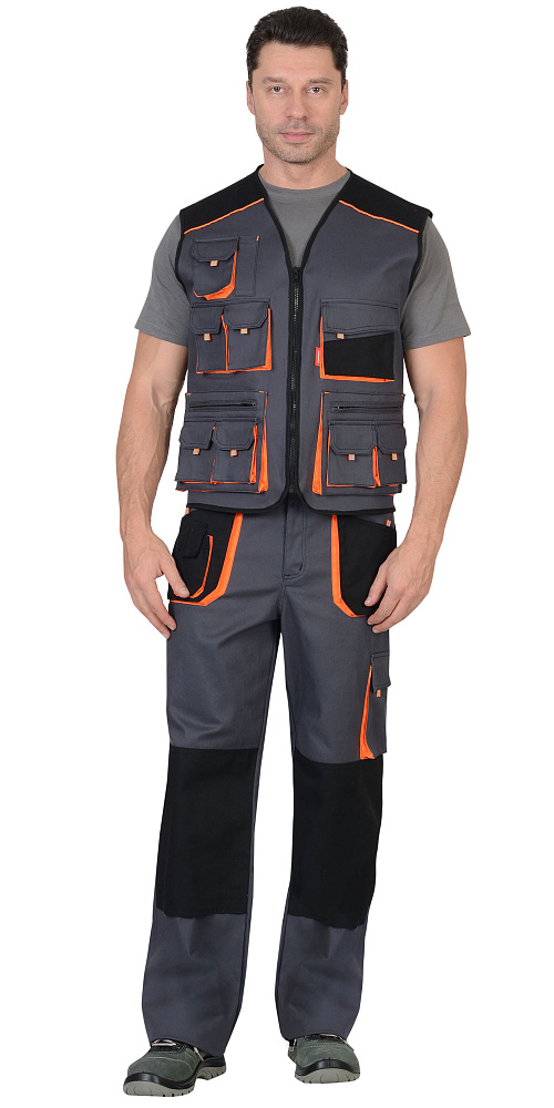 Жилет "СИРИУС-МАНХЕТТЕН" т.серый с оранж. и черным тк. стрейч пл. 250 г/кв.м