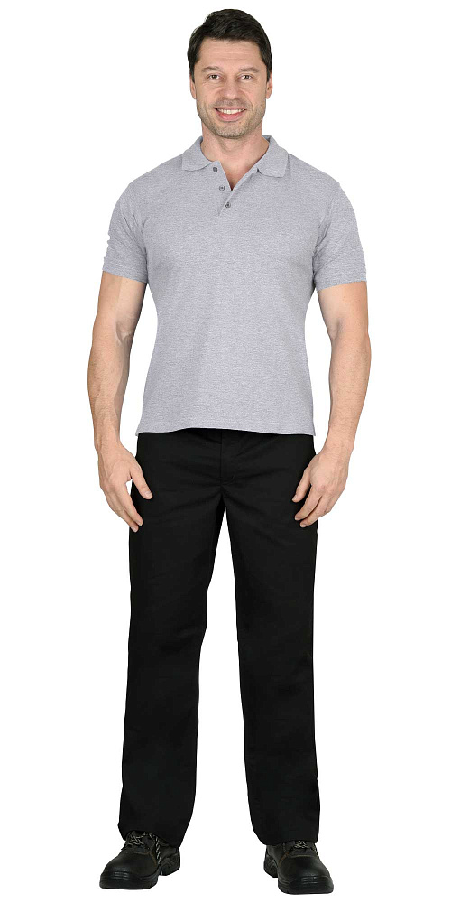 Рубашка-поло меланж серый короткие рукава с манжетом, пл.180 г/м2