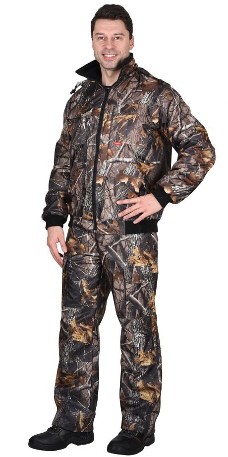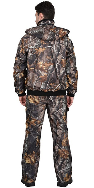 Костюм демисезонный на флисовой подкладке. Куртка с воротником-стойкой, притачным капюшоном, убирающимся в карман воротника-"стойки" на "молнии", нагрудными и боковыми накладными карманами, внутренним карманом на "молнии", пояс и манжеты из трикотажного полотна.Брюки с пристёгивающейся спинкой на бретелях, объёмными наколенниками, с различными карманами и шнуром с фиксатором по низу брючин.Ткань верха: "Оксфорд" с ВО пропиткой, 100 % п/э.Ткань подкладочная: флис, 100 % п/э. ТУ 8550-001-81391241-2008