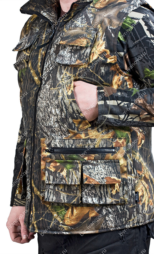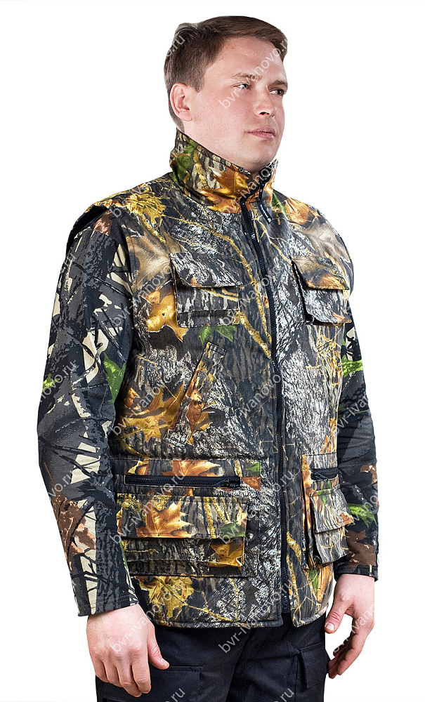 Жилет Буран утеплённый цв. Лес тк. СмесоваяЖилет "Буран" - утеплён одним слоем синтепона, с воротником-стойкой. Застегивается на тракторную молнию. Имеет множество нашивных карманов. Рекомендуемые Т материалы: Смесовые ткани и х/б ткани, Грета. ГОСТ 12.4.236-2011
