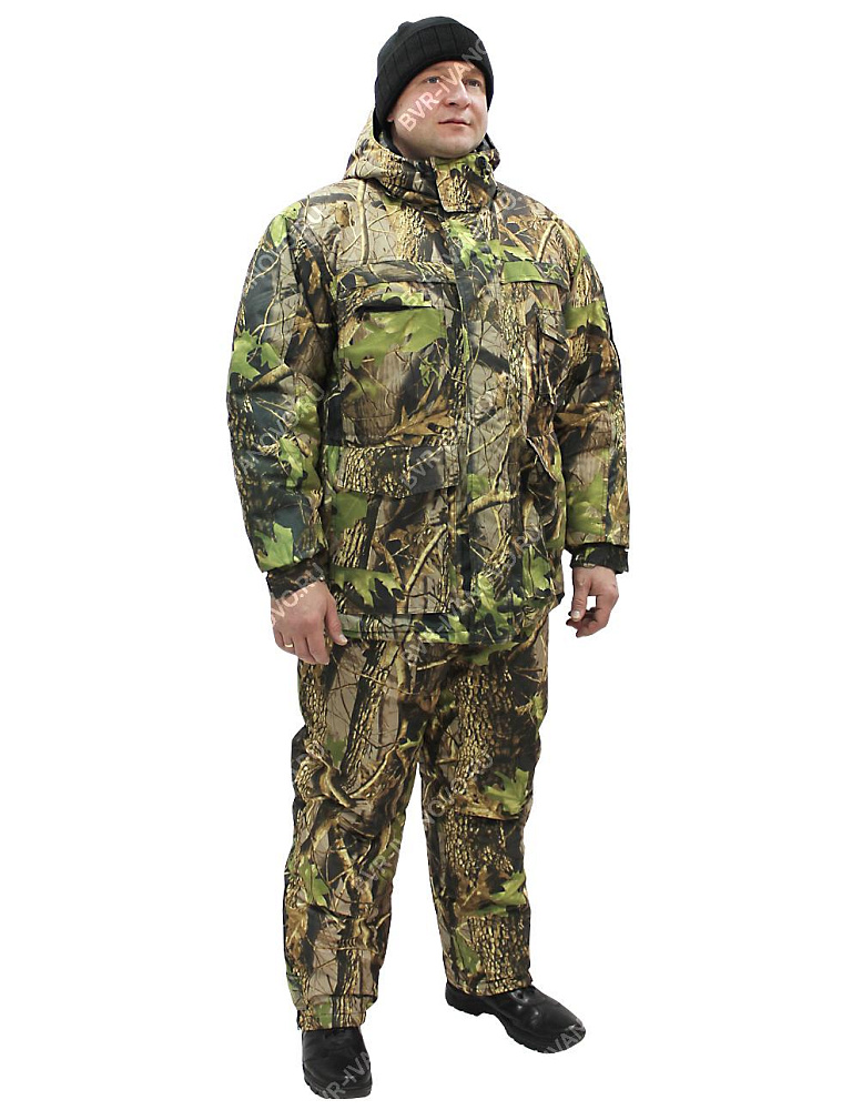 Костюм для охоты и рыбалки "Форест" состоит из куртки и полукомбинезона. Куртка удлинённая на кулиске. Воротник-стойка, отделанный изнутри флисом, снабжен центральной застежкой на тесьму-молнию. Куртка комплектуется ветрозащитным клапаном на липучках. Отстёгивающийся капюшон на молнии. Имеет два нагрудных объемных кармана с клапанами, два нижних с тремя разными входами: один боковой на молнии + боковой потайной и один верхний вход, прикрытый клапаном. Рукав втачной, по низу стянут эластичной тесьмой и регулируется застежкой-липучкой. Имеет много внутренних карманов. Полукомбинезон оснащен центральной бортовой застежкой на тесьму-молнию. Имеется прорезной карман на молнии с левой стороны, и боковые карманы с отрезным бочком на бедрах. Стянут эластичной тесьмой на уровне талии. Для подгонки полукомбинезона по росту имеются бретели с карабинами . Утеплен двумя слоями синтепона. Рекомендуемые материалы: Смесовые ткани, Алова, Твилл, Дюплекс. ГОСТ 25295-2003