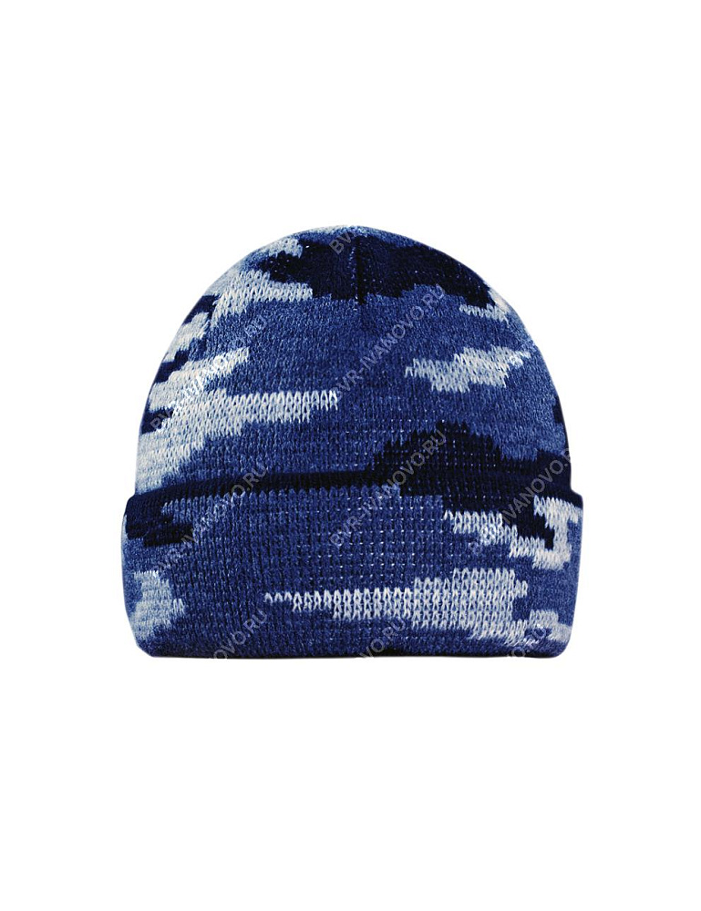 Шапка вязаная 3-х нитка с отворотом цв.Синий КМФ