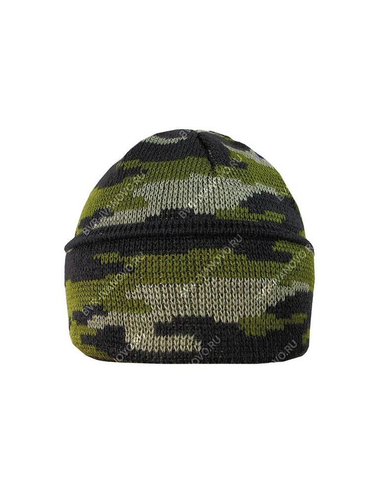 Шапка вязаная 3-х нитка с отворотом цв.Зеленый КМФ